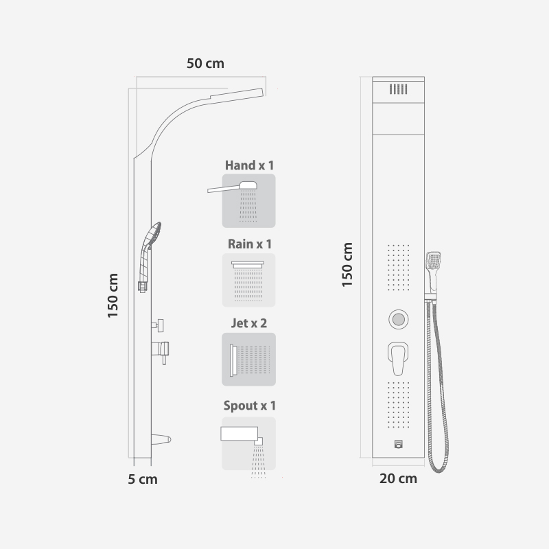 Vioduş Duş Paneli, çağdaş tasarımıyla banyonuza sofistike ve modern bir hava katarken, birden fazla fonksiyonel özelliğiyle de dikkat çekiyor. Şık ve minimalist tasarımıyla modern banyolarla mükemmel uyum sağlarken, sunduğu geniş fonksiyonel yelpaze ile kullanıcılarına benzersiz bir deneyim sunuyor.